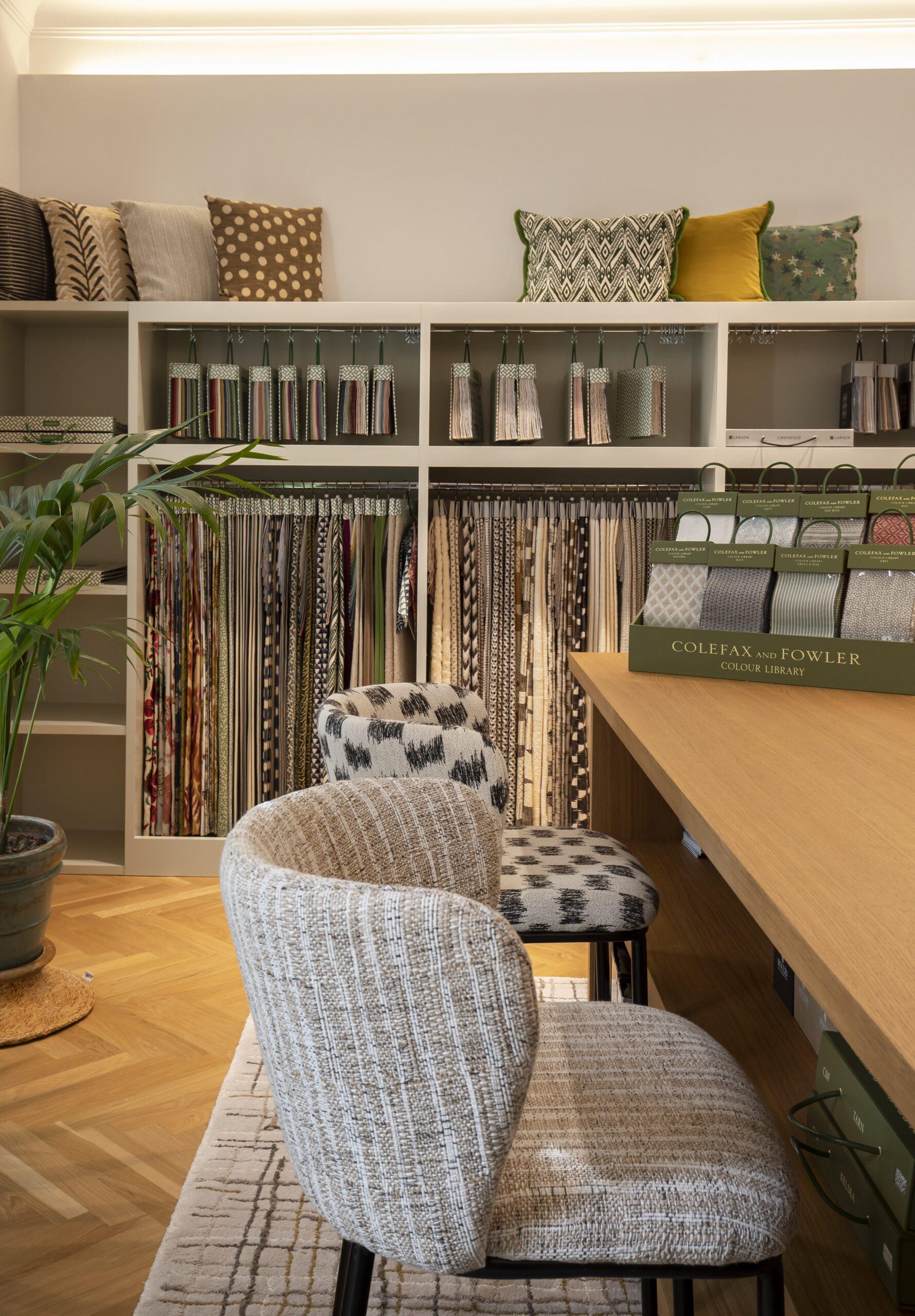 Las combinaciones de patrones y tejidos aportan dinamismo y un toque contemporáneo al Showroom de Cotlin.