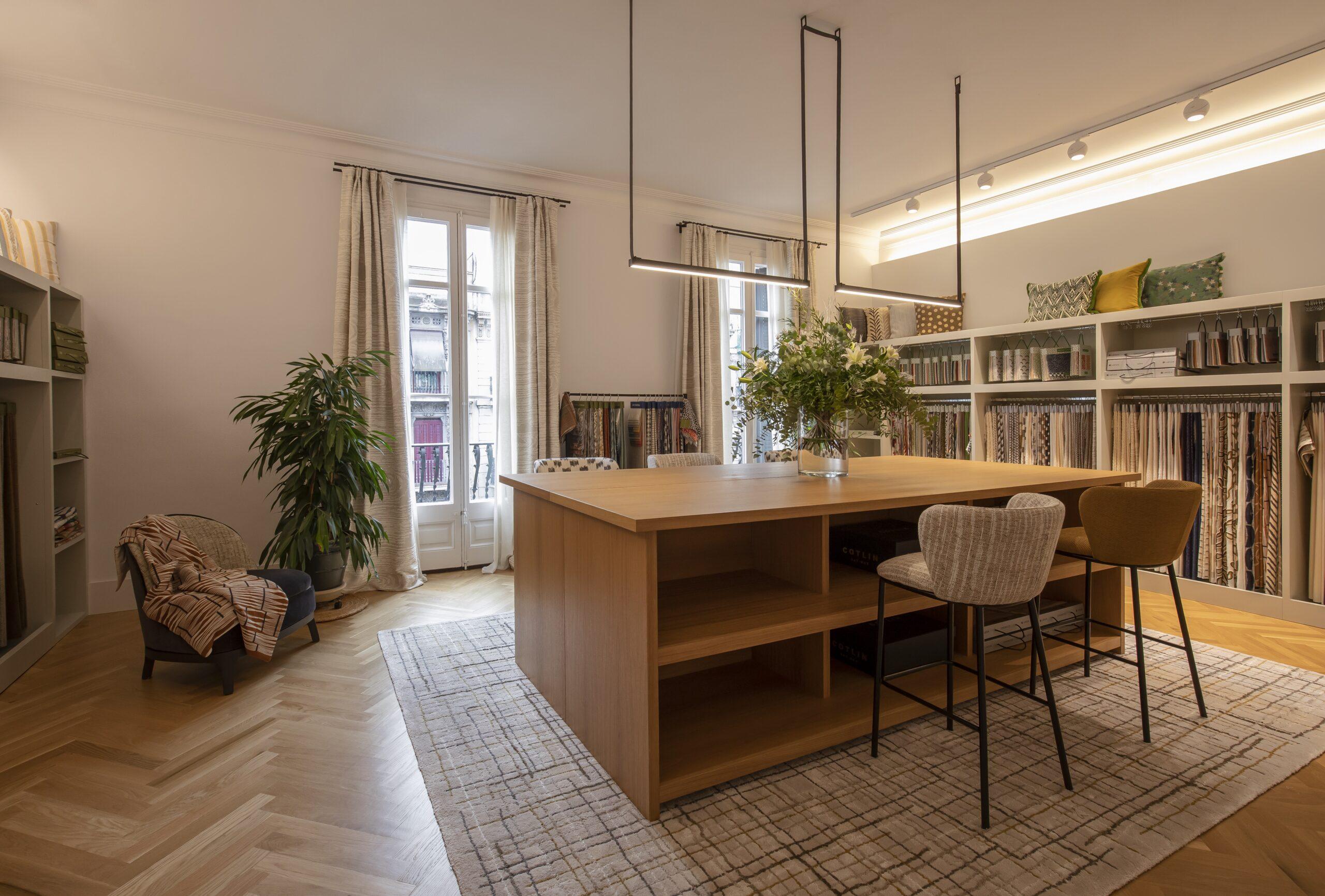 The Showroom de Cotlin BCN es un espacio donde la practicidad y la funcionalidad se fusionan para destacar la calidad y el diseño de las alfombras de la marca. En este proyecto, Marcasal ha colaborado estrechamente con Cotlin, aportando soluciones textiles específicas en cortinas y el tapizado de sillas, complementando así el diseño general del showroom.