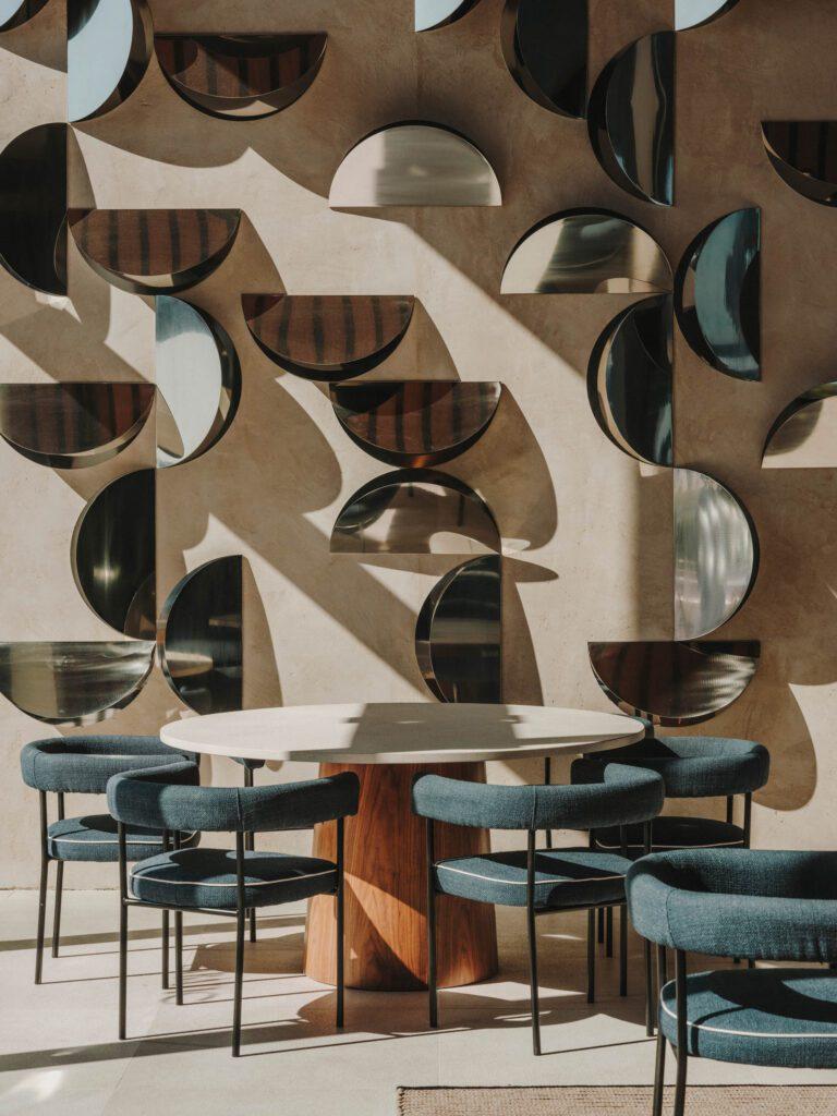En las zonas comunes, especialmente en el restaurante, Marcasal ha llevado a cabo un proyecto de tapizado de sillas. Estas sillas, diseñadas específicamente para el proyecto por Sandra Taruella, no solo ofrecen comodidad sino que también son un elemento distintivo en la decoración. Además, también se han tapizado sofás y butacas, creando espacios acogedores y elegantes donde los huéspedes pueden relajarse y socializar.